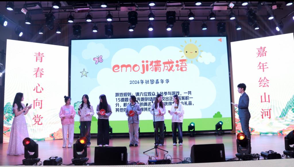 emoji猜成语游戏将欢乐气氛推向高潮,观众踊跃上台参与。