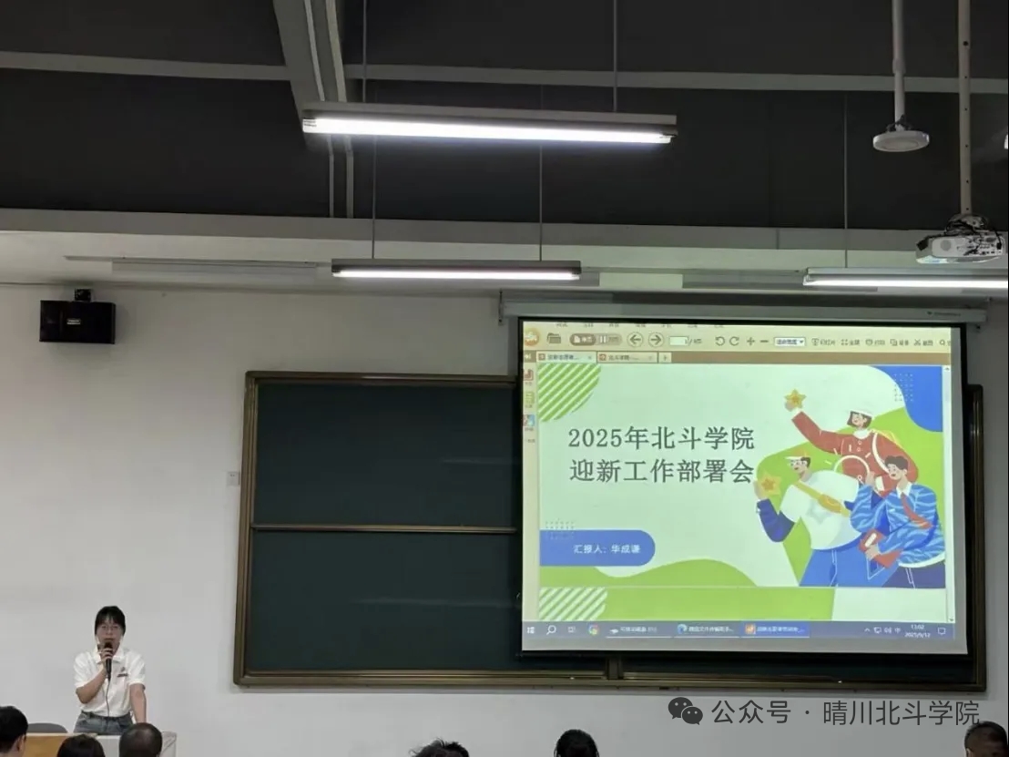 2025年9月12日,北斗学院团总支书记李晓嫚老师和新生辅导员汤治欣老师与学生会各位干部和志愿者召开了迎新工作部署会,共同熟悉周末迎新活动的工作具体事宜及工作要求,会上,根据以往经验结合本次新生情况,对各个环节进行了细致规划。从新生报到点的布置,到引导人员的安排;从领军训服的流程,到孩子家长们寝室的指引,都一一明确责任到人。同时,为了能让新生和家长感受到学院的热情与关怀,还专门组织了志愿者进行礼仪和服务培训,确保以最好的状态迎接每一位新同学的到来。