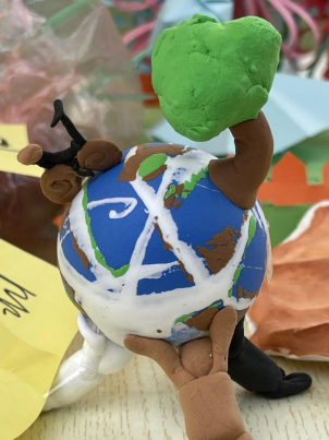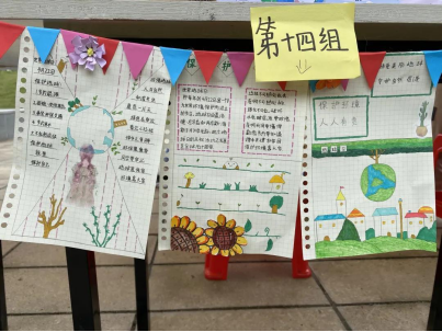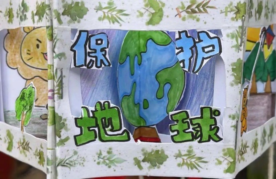 同学们通过手工来表达对人与自然和谐共生的充分理解,变变思维,动动手指,用手工作品表达对地球的浓浓爱意。