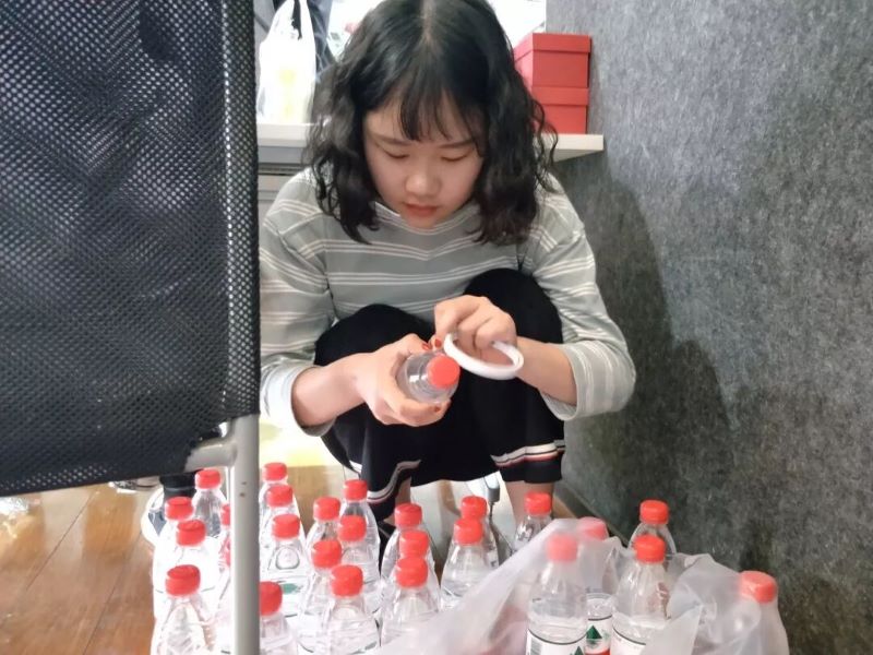 贴心小姐姐正在为我们每一个人的水标上名字,以免弄混。
