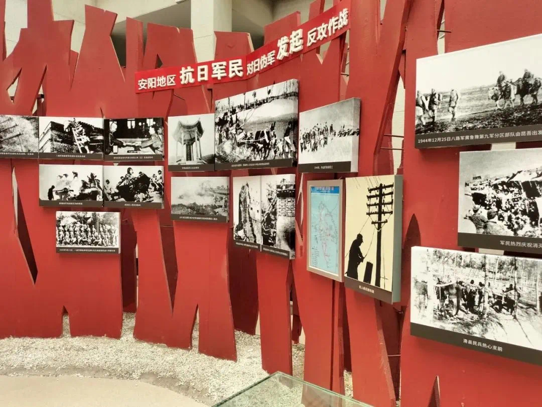 中厅主要向大家展示了在抗日战争后期,在安阳开辟了连接晋鲁豫根据地和太行根据地的地下交通线,和根据地居民开展大生产运动、最后抗战胜利的情况。