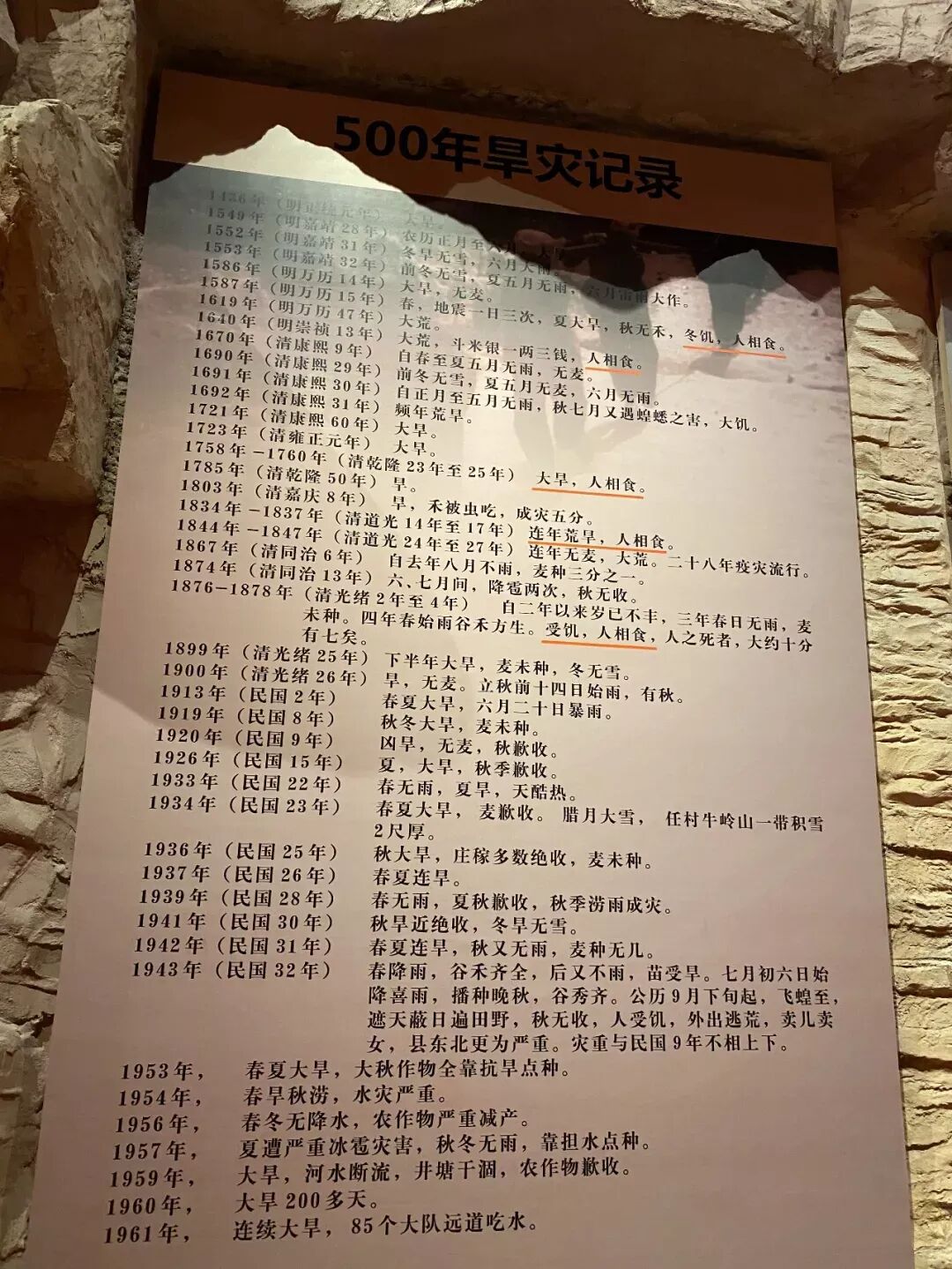 林县,一个从明朝就缺水的地方,干旱一直是他们生活中最大的问题,历史上甚至多次出现过“人相食”的惨景,甚至到了新中国成立后也出现过。为了解决没有水的问题,林县人历史上修建了众多水利设施,但都没能从根源上解决缺水的问题,这是红旗渠的根本由来。