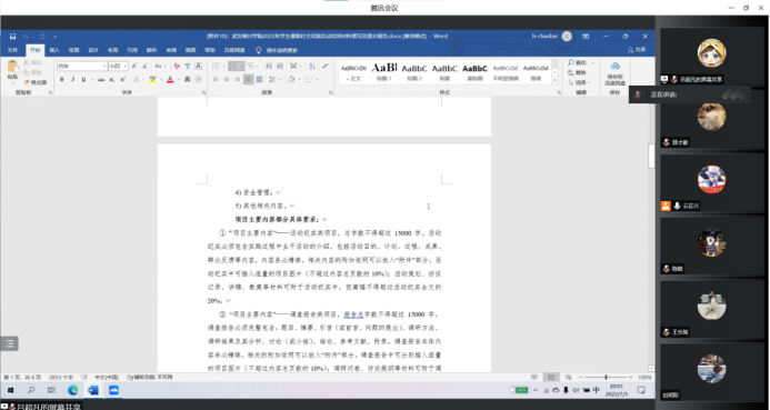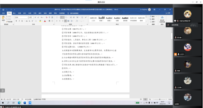 7月5日,在我们刚刚到家不久后,云老师马不停蹄的喊我们召开了线上会议;线上会议由项目带队老师云老师主持开展。会议中,云老师对项目进行了总结,同时,也对我们暑期的未来进行了一定的规划,云老师提出了新的带队方式,将我们暑期社会实践团队分为三个小组:一组负责项目的进一步后端核心开发;二组负责对项目进行网页前端优化,同时,建立一个暑期项目分享群,在群中大家每天分配任务进行学习,以起到监督自己的作用;三组负责在暑期项目分享群众招募监督人员,同时进一步对我们的暑期项目进行问卷调查、资料搜集;本次暑期社会实践项目为一个线上旅游平台,对我们来说,重要的不仅是项目前端后端的美化与发展,让更多的人来体验享受,对我们的项目提出有益的反馈也是必不可少的一步。