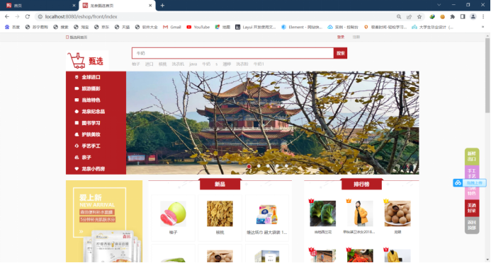 7月6日后,计算机学院暑期社会实践项目组对项目进行了正式的项目测试,前端方面,对项目的界面各式各样进行进一步美观优化,优化使用者的真实体验,“龙泉随心游”主体为旅游界面,旅游路线、美丽的龙泉旅游景点、附近餐饮住宿、旅游攻略与注意事项等等;“龙泉遴选”主体界面为购物界面当地的一些柚子、核桃等农产品,带动乡村经济发展旅游振兴。