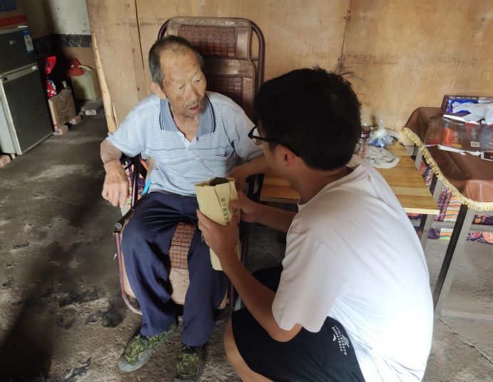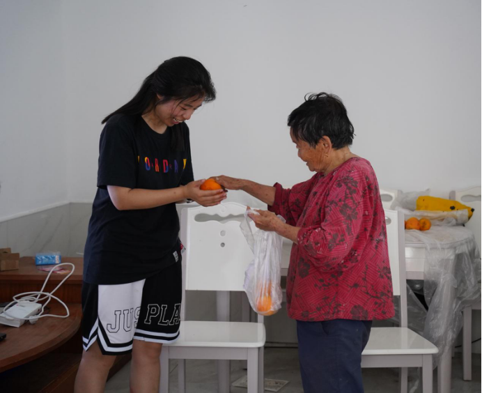 他们在采访、调研的过程中,了解了当地新媒体的发展状况——90%的村民仍然依靠种橙和集中收购的形式谋生,对公众号、抖音、直播等新媒体知之甚少。基于此,该团队坚定以“借力新媒体,振兴新乡村”为口号,宣传、践行新媒体对乡村致富的积极作用。此外,他们还关注到了村内的空巢老人群体。他们去到老人家中,关心老人身体,关爱老人生活,帮助他们解决生活中的“疑难杂症”。