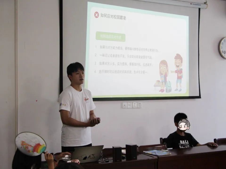 7月5日,会计学院“会”乐星球团队团队成员针对福利院中心老师的要求,制定了相关的课程,并且积极讨论课程方案和可实施性。团队成员给同学们开展了主题为“拒绝校园霸凌—安全健康成长”的课程,并从什么是校园霸凌、校园霸凌的特点、校园霸凌的预防、应对校园霸凌的方法四个方面给孩子们进行全方位的讲解。团队成员还教授孩子们防身术相关知识,并向同学们讲述防身术学习的重要性、以及如何正确使用防身术的方法。课堂上,同学们表现积极,对教学内容展现出浓厚的兴趣。课后,团队成员寓教于乐,积极组织合唱活动,引导孩子们在轻松、欢乐的氛围中学习成长。