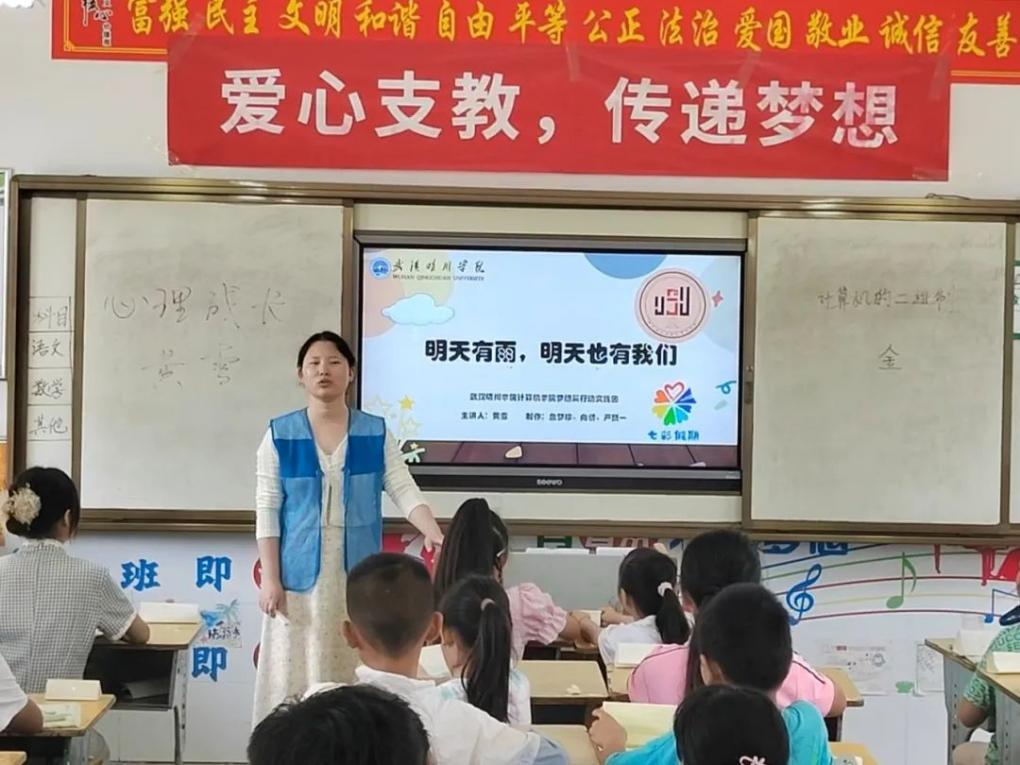 2024年7月6日,武汉晴川学院计算机学院梦想翼行动实践团成员们不远千里,远涉他乡,深入到土门镇六官坪小学、干沟村托幼中心、唐家坪村幼儿园这三个教学点,为当地的孩子们带来了精心准备的课程。他们深知,孩子们对于知识的接受能力各不相同,因此在课程设计之初,团队成员就深入研讨,针对不同年龄段、不同学习基础的孩子,量身打造了符合他们智力的课件。精心策划并实施了涵盖少儿英语启蒙、安全知识教育、趣味盎然的国家地理探索、引人入胜的历史文化启蒙、益智解谜的猜字游戏,以及温馨关怀的心理健康教育等一系列丰富多彩的课程。课堂上,孩子们那一双双闪烁着好奇光芒的眼睛,如同夜空中最亮的星辰,不仅映照出他们对未知世界无尽的探索欲,更流露出对广阔天地深切的向往与憧憬。而晴川学子作为支教老师,也在这一过程中收获了满满的正能量和感动。