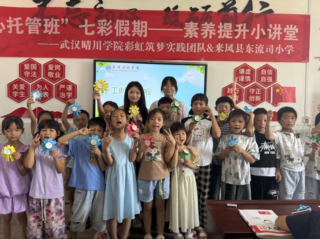 七月上旬,武汉晴川学院会计学院彩虹筑梦实践团队走进恩施来凤县东流司小学,开设“爱心托管班”,以红、橙、黄、绿、青、蓝、紫七大主题课程,开展七彩假期素养提升活动,丰富乡村儿童假期生活,助力全面发展。红色教育厚植家国情怀与中华民族共同体意识;橙色健康课程聚焦食品安全与视力保护,强化健康管理能力;黄色安全课围绕网络安全,提升防诈实操技能;绿色心理课堂帮助儿童掌握情绪管理与应对校园霸凌的方法;青色环保课引导树立爱护环境与尊重生命的意识;蓝色科技课通过“理论+实践”模式启迪科学思维;紫色非遗课则让孩子们感受传统茶文化的独特魅力。此次活动以多样化课程与实践赋能乡村儿童成长。实践团队表示,将持续开展此类活动,为乡村教育振兴贡献力量。