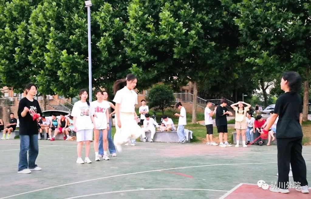 第二个是开怀畅意跳大绳,这个可以说是女孩子们最喜欢的一个项目了,随着绳子的起落,同学们也有节奏的起跳和下落,青春的节奏就在其中。