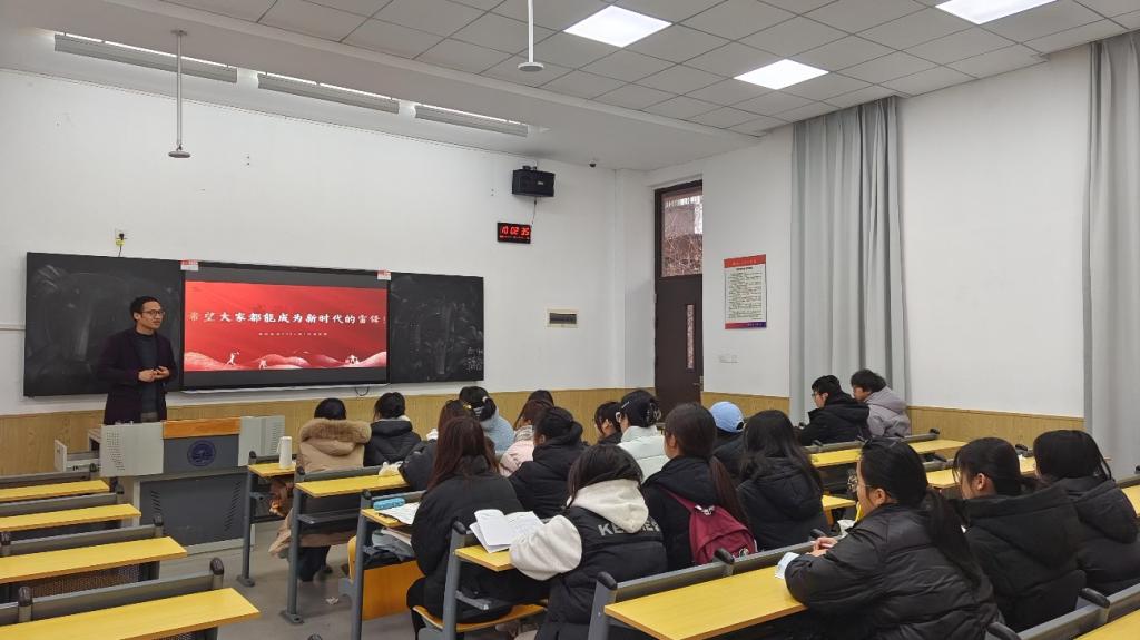 3 月 5 日上午,外国语学院商务英语专业 202401班团支部在教一106多媒体教室组织了学雷锋主题团日活动。辅导员周水水老师指导活动开展,活动由团支部书记贾茜然主持。