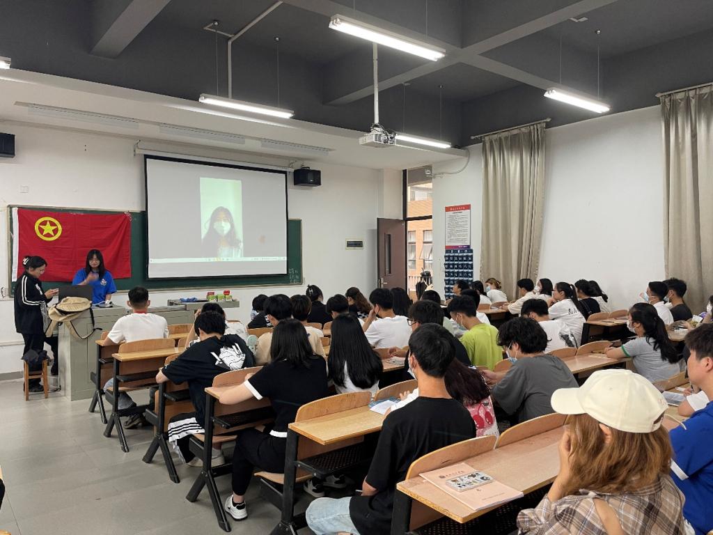 团课伊始,由主持人以及组织部成员为同学们播放从参与团课学习的班级上交的25个作品中筛选的10个优秀视频。每个视频都围绕“我为家乡代言”和“红色故事我来讲”两个主题展开。在视频中,同学们向大家介绍了自己家乡的美景,还宣传了家乡当地的特产,有些地方也凭借悠久的历史文化和闻名的人文景观成为了旅游景点……大家十分投入地观看视频,情不自禁地交流起各自的家乡,对家乡的自豪和热爱溢出了眉眼。展示的10个优秀视频作品中不乏讲述红色革命故事的。无论在哪个时代,提及前辈的事迹,传承先辈的精神,都是中华文化延续的见证。或许他们的生命早已结束,但是他们的功绩将永远被历史记住,时代的洪流不会将他们的光辉冲散,在崭新的明天,一批又一批的青年会接住时代交付的任务,完成当代人的使命。