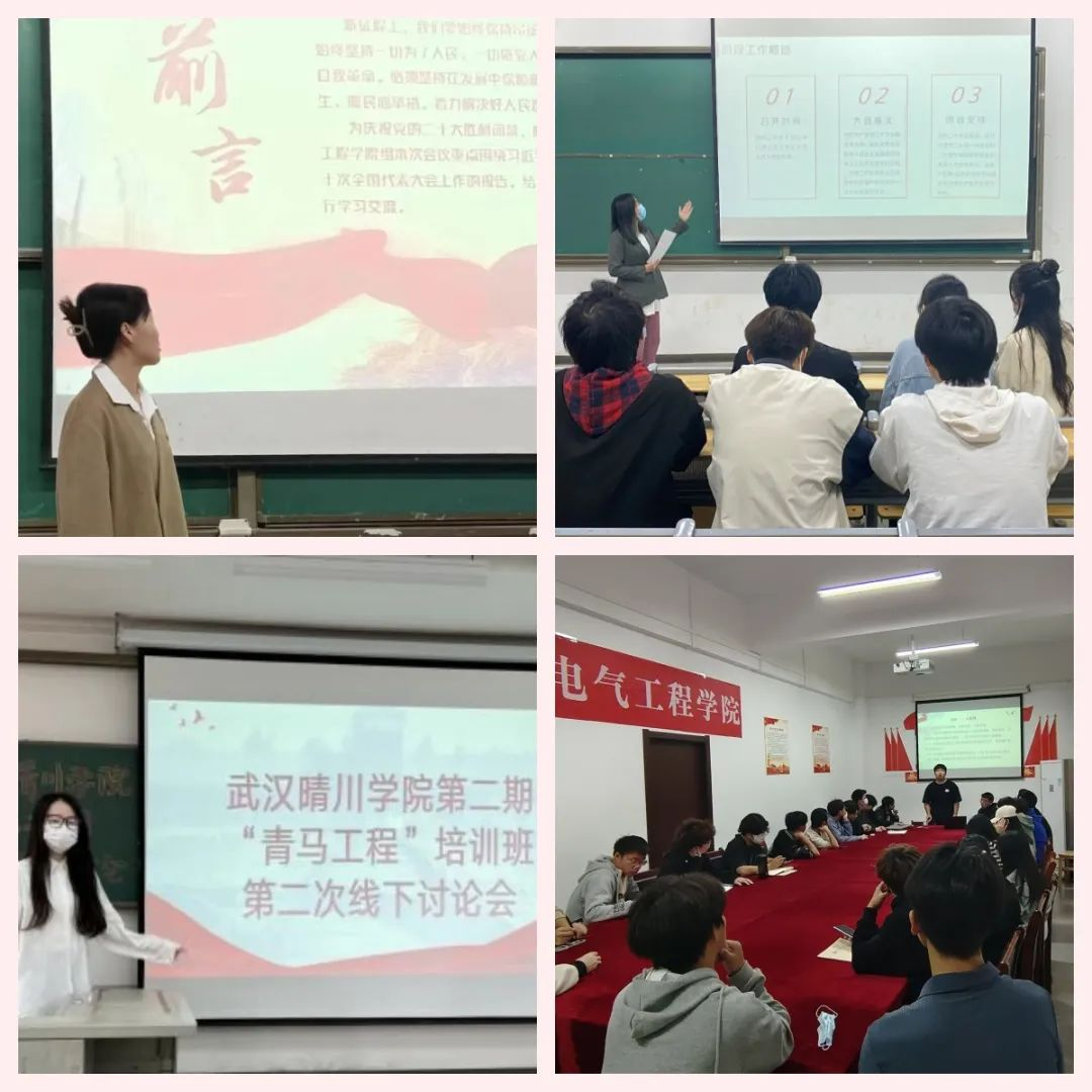 为学深悟透、贯彻落实党的二十大精神,自党的二十大召开以来,武汉晴川学院校团委积极组织“青马工程”培训班学员学习,相继开展线下分组讨论会。青马班学员们积极研讨二十大报告,体悟《习近平谈治国理政》第四卷,深入理解习近平新时代中国特色社会主义思想,立志做有理想,敢担当,能吃苦,肯奋斗的新时代青年。