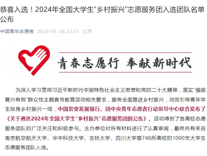 喜报!武汉晴川学院会计学院“励励晴川”志愿服务队入选2024年团中央“乡村振兴”志愿服务团
