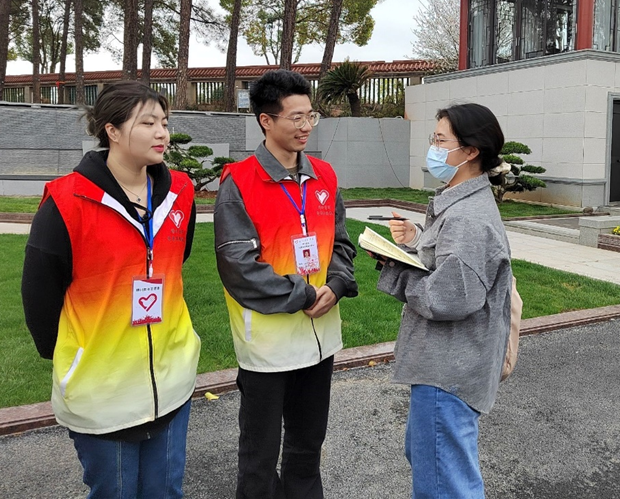 志愿者接受完岗前培训后,协助孝恩园工作人员向大家提倡宣传无烟祭扫,劝说祭扫者使用鲜花和丝带来代替传统的香烛纸钱,以寄托对先人的敬仰和怀念;针对人员拥挤的情况,主动引导疏散人流,对秩序进行维护;对所拿物品较多的人员提供寄存物品等服务。志愿者们以饱满的热情和积极的态度,为祭扫者提供各项志愿服务,努力确保人们都能够在安全舒适环境中表达哀思。