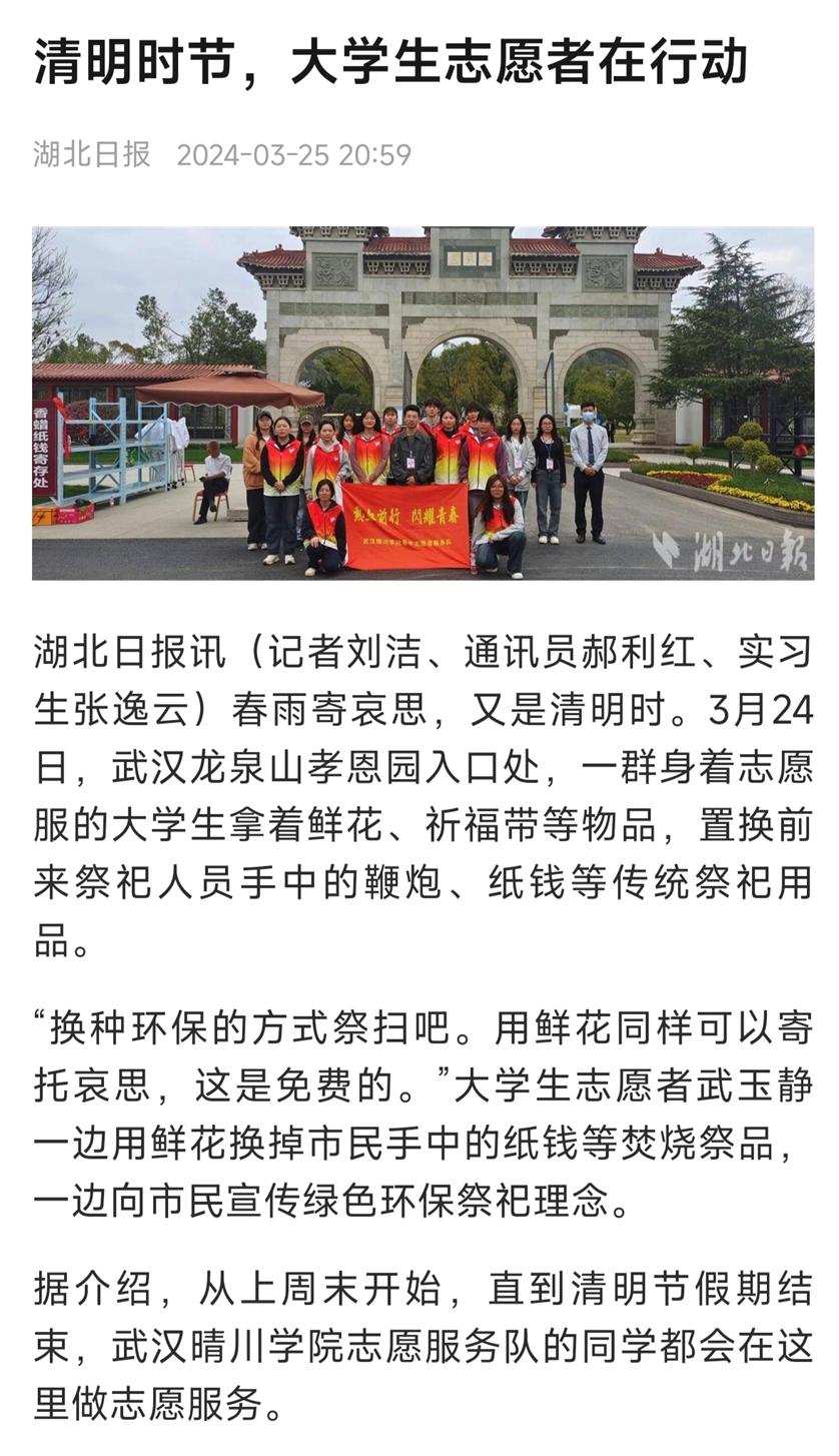 【青年志愿者服务队】校地共建、平安清明|晴川学子开展“绿色清明,文明祭扫”志愿活动