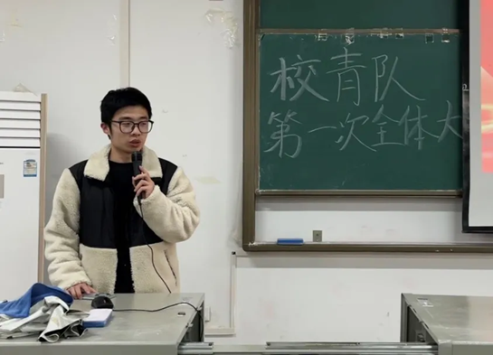 接下来由副队王呈睿进行发言。主要介绍了第七届“与绿同行”微公益环保创意大赛的内容,并积极动员校青队成员们参与比赛,积累更丰富的实践经验;在践行环保创新的同时,增强志愿服务荣誉感。